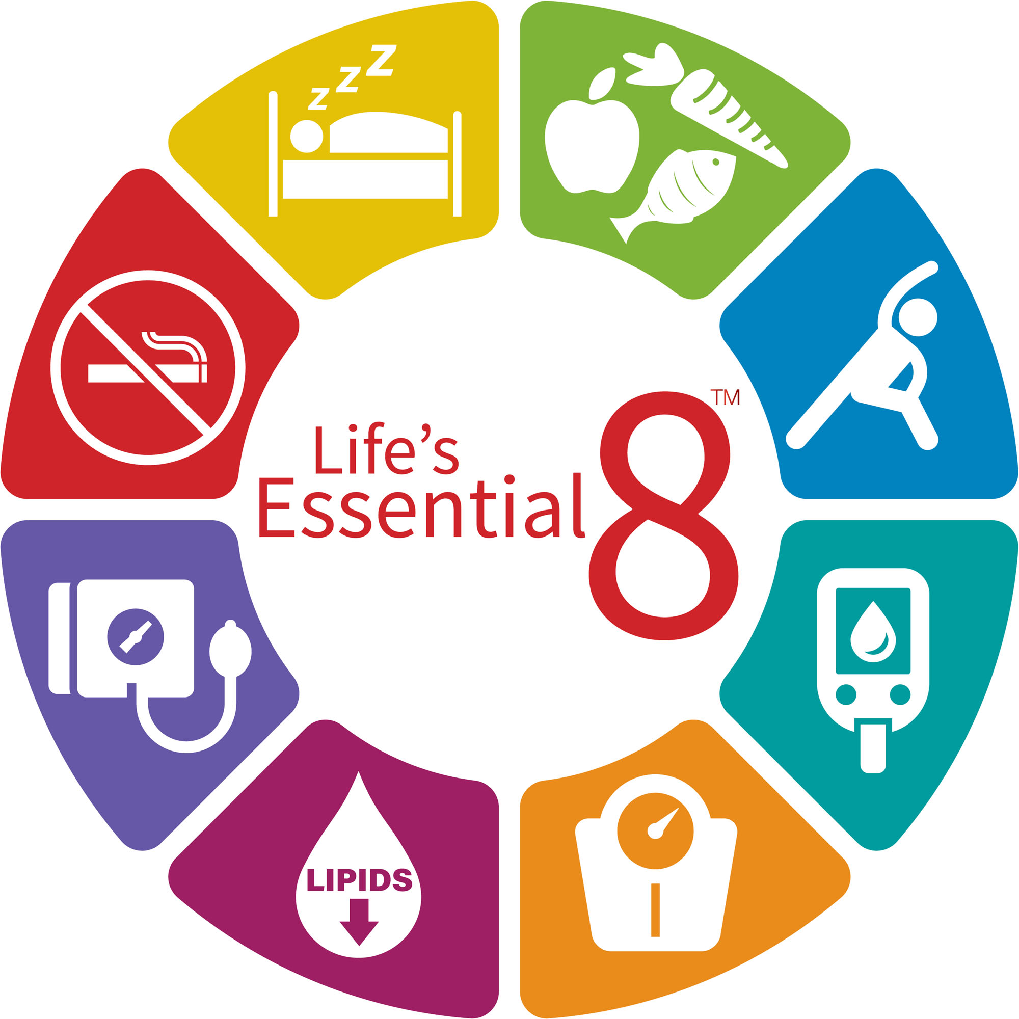 Hiệp hội Tim mạch Hoa Kỳ (AHA) giới thiệu bộ tiêu chuẩn Life’s Essential 8 (LE8) nhằm cải thiện sức khỏe tim – não【AHA, 2022】. Gồm 8 yếu tố: